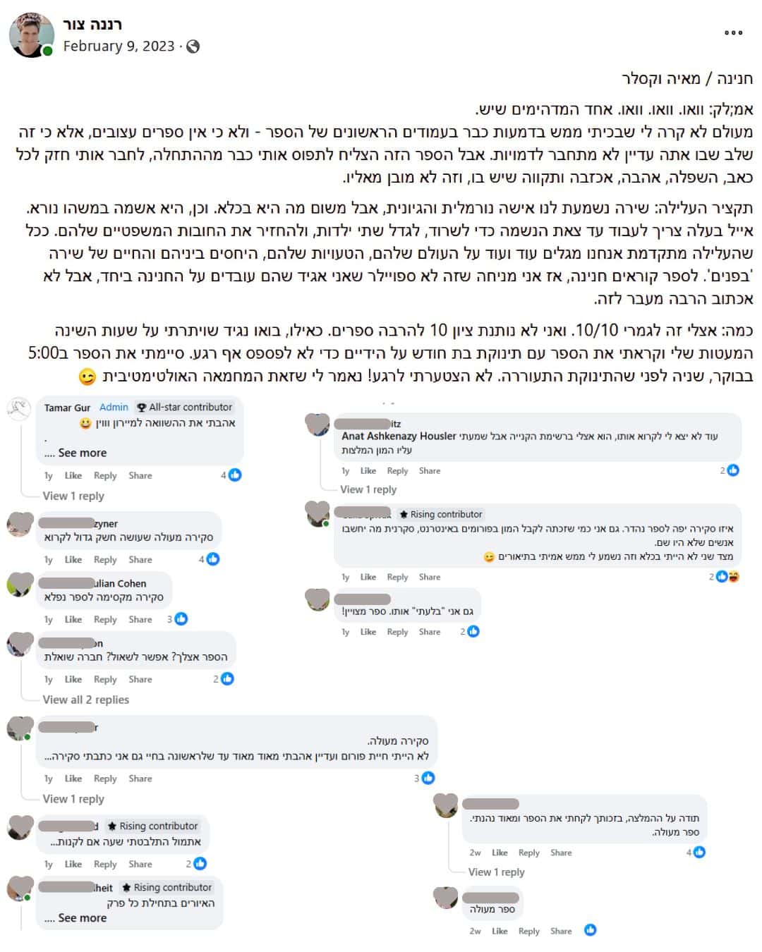 מאז הצטרפו גם ביקורות נפלאות בסטימצקי דיגיטל וב-Goodreads, וביחד נוצרה מקהלה מרגשת של קולות קוראים. רבות מהביקורות הן מעמיקות ומפתיעות – קוראים וקוראות חשפו בפניי זוויות שלא חשבתי עליהן כשכתבתי, מצאו בספר משמעויות חדשות, ראו דברים שאפילו אני לא ידעתי שהם שם. כאילו הספר ממשיך לגדול דרך העיניים שלהם.